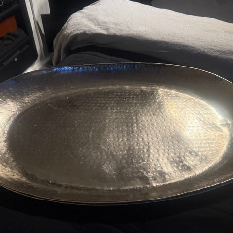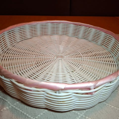 Gammelt plast fat. Ca. 25 x 25 x 25 x 5 cm. Den er brukt, men hel.
