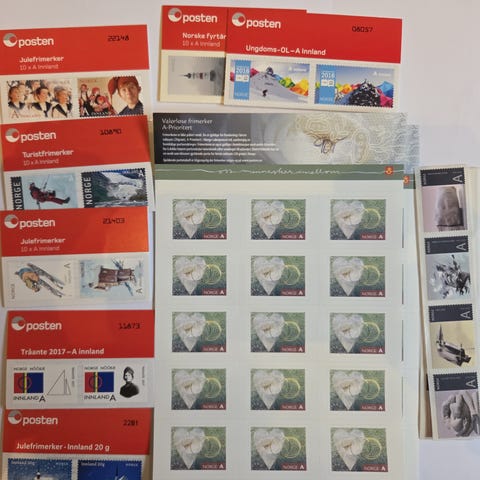 Jeg kjøper alle typer A-post Innland / Europa / Verden. Skal brukes som porto så frimerkene må være postfriske. Hefter, rull eller løse frimerker. Betaler 30% av pålydende inkl levering.