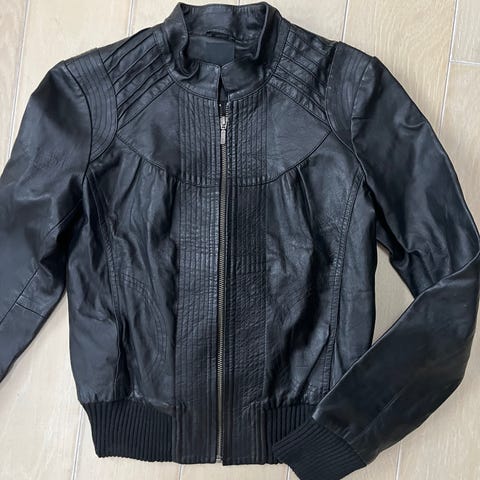 En utrolig kul skinnjakke som dessverre blir for lite brukt da den ikke helt passer til meg lenger. Den er lite brukt så ingen skader eller riper på den. Passer best en S men M kan gå også.