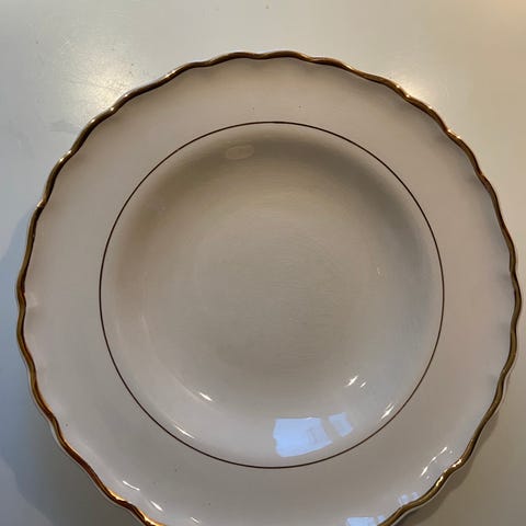 Gammelt Porsgrund Porselen serveringsfat. Fra 1955. Se stempel. Helt og pent. Litt slitasje på gullkanten. Mål 32 cm. i diameter. Må hentes på Løvenstad. Se også mine andre annonser ved å klikke på navnet mitt. Mye fint både gammelt og nytt til bra priser.