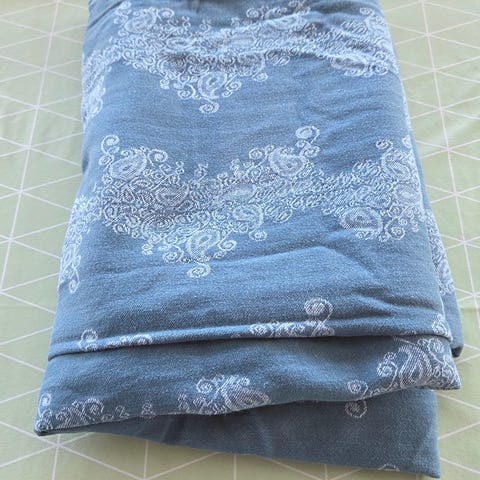 Sjalet er laget av 40% bomull, 40% merino, 20% mulberry silke 😍med en tykkelse/GSM 370.