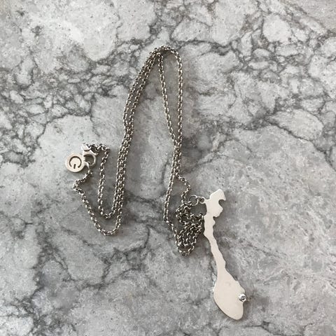 Selger pent brukt Celine Engelstad sølvsmykke med gaveesken den kom i. Kolleksjonen tilhører en av de tidligste, kjøpt rundt år 2010. Nypris ca 2000 kr. Måler 6 cm langt og 3,5 cm bredt