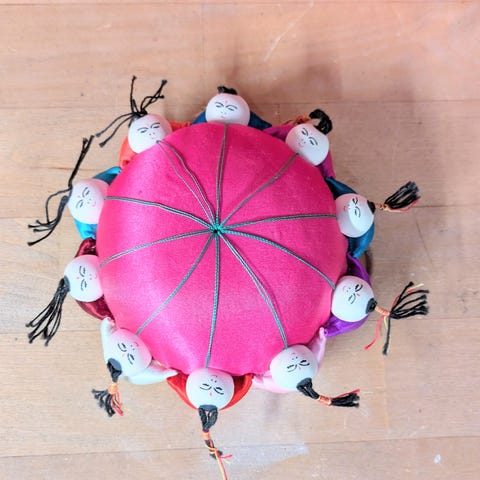 12*16cm når brettet dobbelt. Brukt som modell i håndarbeidsundervisning .. 70-tallet. Kjøper betaler porto
