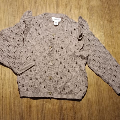 Nydelig ferskenfarget cardigan fra Arnie says, str.1-2 år. Deilig og myk. 60% alpakka, 22 % ull.