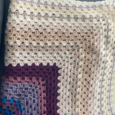 Selger et nydelig heklet babyteppe/vognteppe med målene 60x84 cm. Materialer: