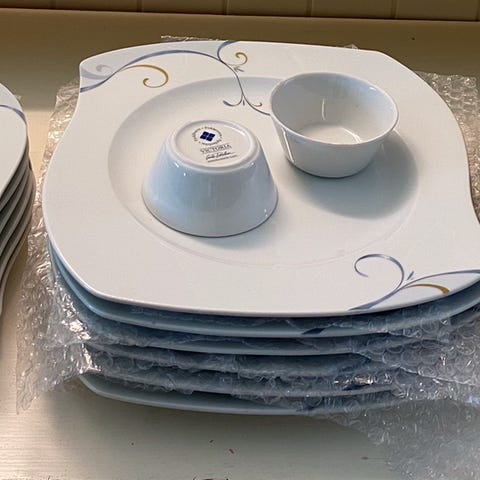 • 6 middagstallerkener: 150 kr per stk