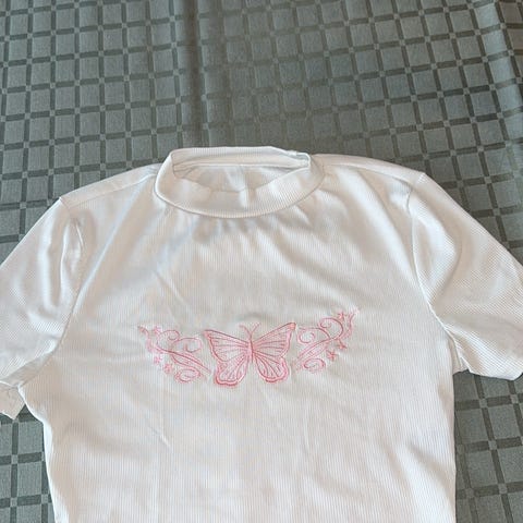 Kjøpet er endelig. Sommerfugl-toppen selges som den er og retur aksepteres derfor dessverre ikke.