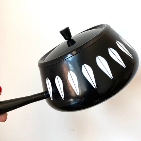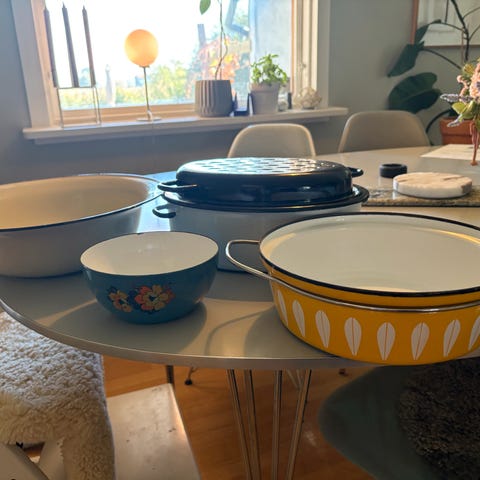 Stor Cathrineholm gryte med lokk designet av Grete prytz Kittelsen: stor blå med hvitt mønster. Dyp blåfarge. Ingen skader, kun vanlig bruksslitasje. Diameter: 27 cm.