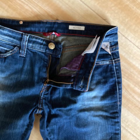 Diverse bukser selges da de er for små til meg. Selger dem for 200kr per stk. Felles for buksene er at de er veldig pent brukt, uten flekker eller skader. Den lyseblå og den grå fra Five Units (modell Angelie Zip str 27)er brukt et par ganger. På Sand-buksa står det str 31, men den er omtrent som de fra FiveUnits.