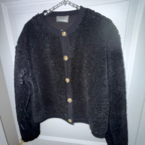 Pent og lite brukt kåpe i sort bouclé med gulldetaljer fra Zara.