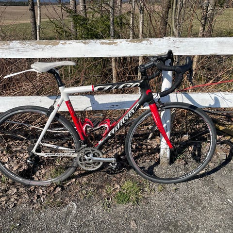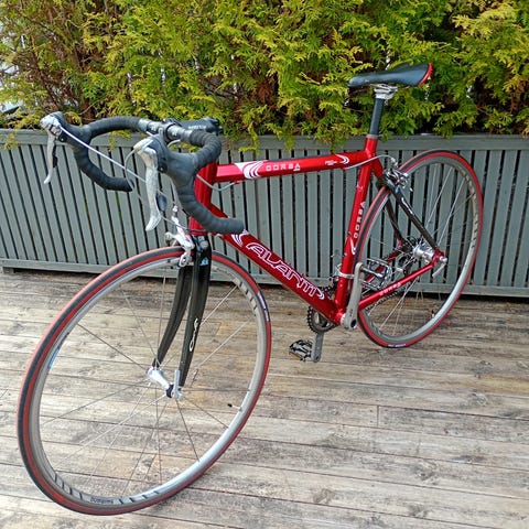 LeMond sykkel med aluminium ramme (53cm) og karbon gaffel. Mavic Cosmos hjul sett. Shimano Ultegra. Må ha ny sete og trolig nye dekk, da den er stått lagret siste 3-4år.