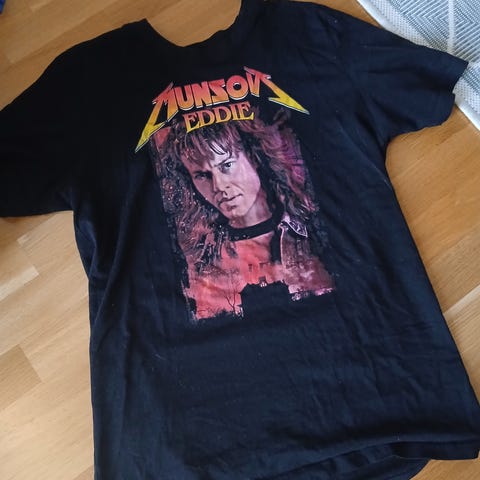 Rød tskjorte 🎸 Small - med rock, musikk og gitar print
