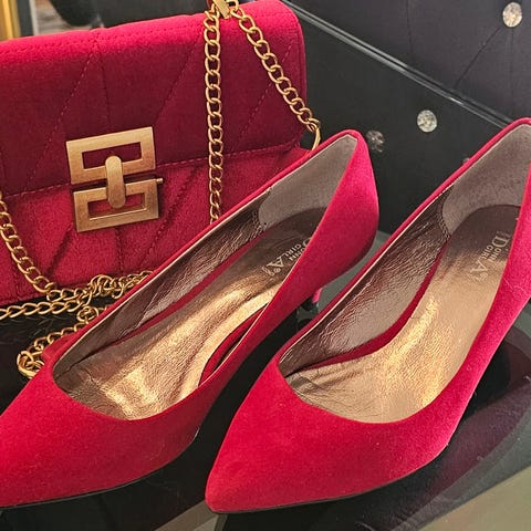 Lys gråblå sko str 39 og lys gråblå veske i semsket materiale. Selges samlet 350