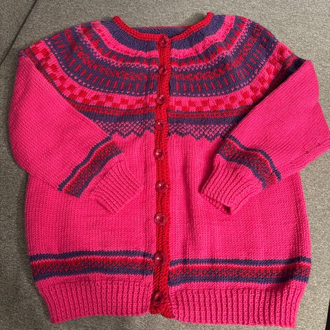 Strikka jakke til jente. Boblejakke fra ministrikk. Ikke brukt.