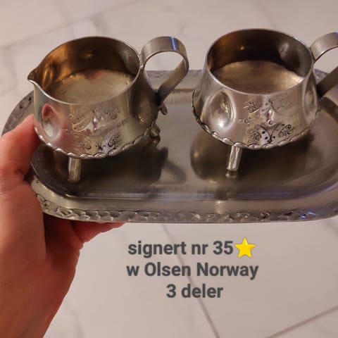 Har arvet et søte fløte og sukker sett i tinn. Merket Holsten Tinn Norway 308.