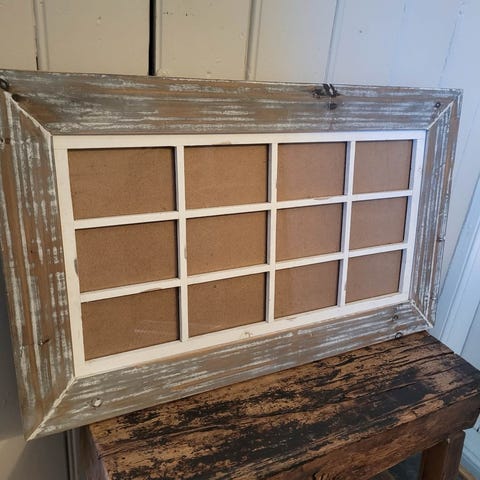 Flott tavle i ramme med tre fotorammer øverst. Oppheng bak. Bredde 43cm høyde 60cm. Kan sende.