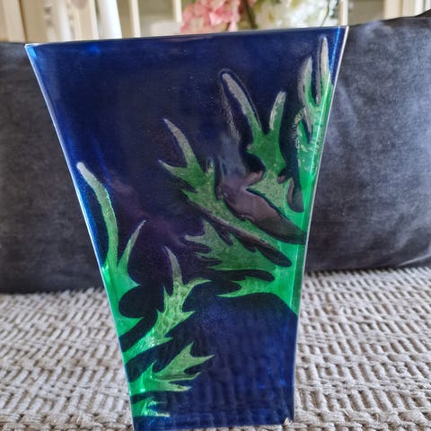 Vakker Steninge Slott vase/lykt med matt "blondemønster". Stått til utstilling i vitrineskapet og kun benyttet et par ganger etter jeg fikk den i gave. Ingen skall eller sprekk i glasset.