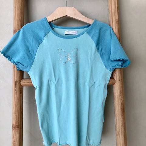 Vintage batikk petrolblå 💙 t-skjorte med velur hjerte, engel og skrift 💙 10 år