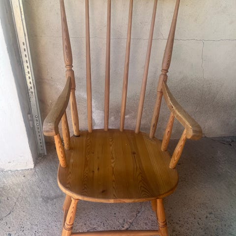 Pent bord og stoler, toppen er slipt og lakkert. Gode stoler.