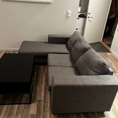 Sofaen er slitesterk og utrolig god å sitte i. Divanen er 150 cm. Lang og selve sofaen er 270 cm. Knekt en pinne under, men er av liten betydning