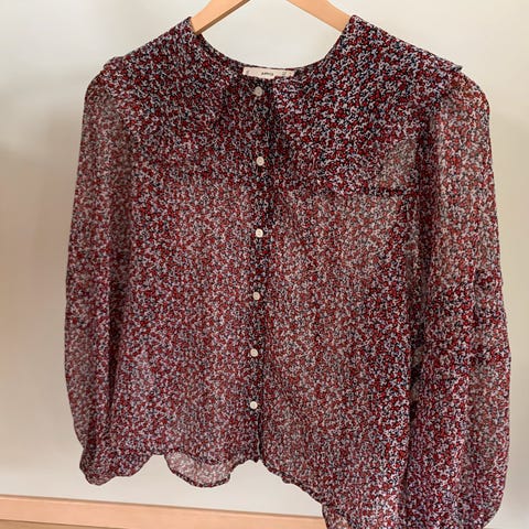 Lite brukt bluse fra Mango str XS. Rød med gulldetaljer. Trenger ikke strykes. Ny pris 299kr.