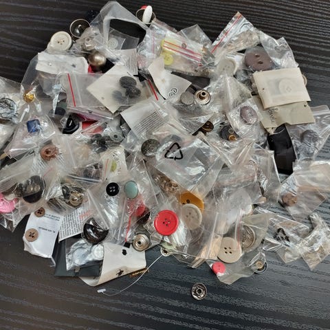 Håndlagde knapper, selges for 40kr pr. Bilde.