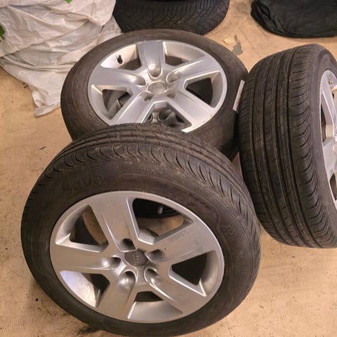 Har ca 10 komplette sett med sommerdekk inkl felger.