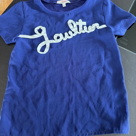 Meget pent brukt t-skjorte fra Petit Bateau i str. 10 år/140 cm. Liten i størrelsen. Mørk blå med trykk i hvitt og gult. Kun brukt et par ganger da den ble kjøpt litt liten.