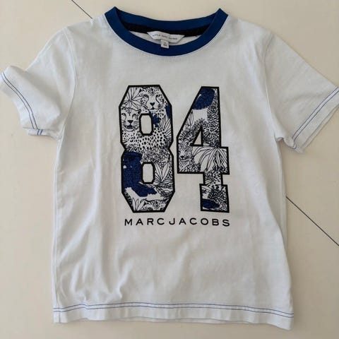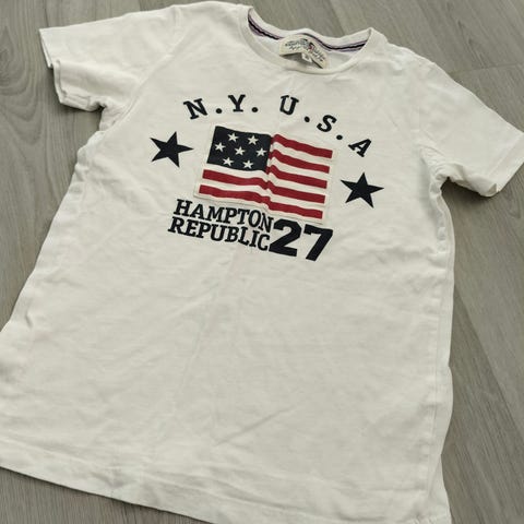 Meget pent brukt t-skjorte fra Mayoral i str. 10 år/140 cm. Litt liten i str. Kun brukt et par ganger. Hvit med applikert trykk i blå og beige. Fremstår nærmest som ny.