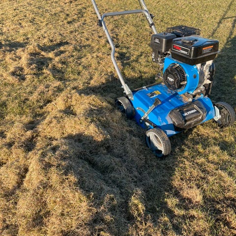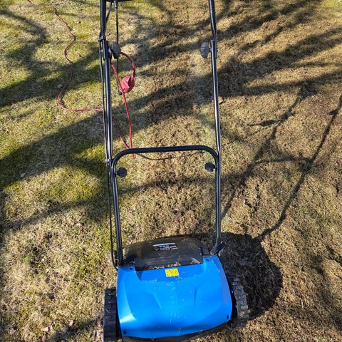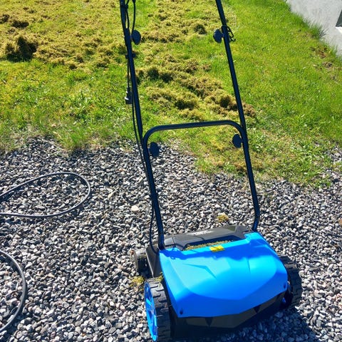 Med to forskjellige ruller. Vertikalskjærerullen skjærer striper i plenen som gjør det enklere for plenen å ta til seg vann, gjødsel og oksygen. Moseriverullen fjerner mose fra plenen. 230 V.