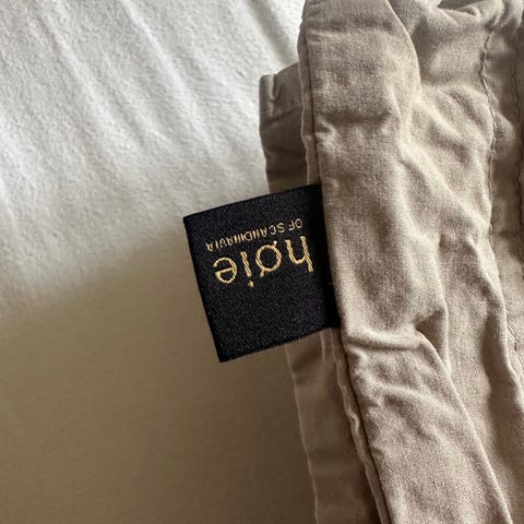 Selger nydelig klassisk beige sengeteppe i 100 % bomullskvalitet( bomullsvelour) fra Bellas hus.
