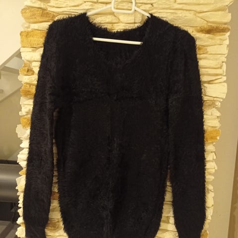 Utringet, med røffe bånd og påsydd mønster i ryggen. Liten str L