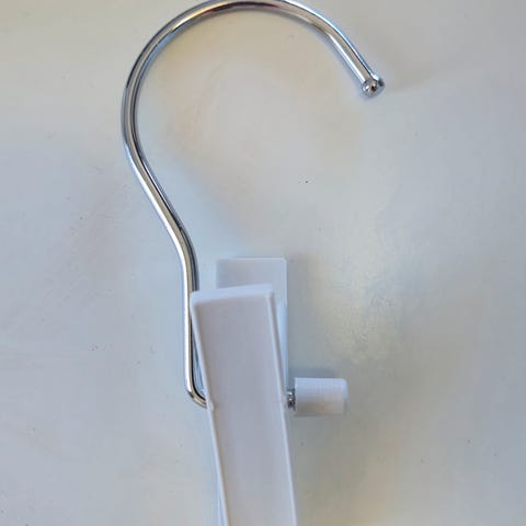 henger opp sko og støvler får du en oversiktlig løsning. Hengeren er produsert i høykvalitets stål og har en lengde fra 11 cm. De to klypene er individuelt flyttbare og er selvfølgelig med vårt non-slip belegg, som forhindrer merker og skader på stoffet. Den vendbare kroken garanterer enkel bruk.