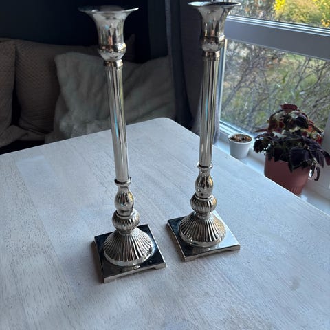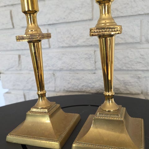 2 stk nydelige og fint brukte tunge lysestaker i messing.
