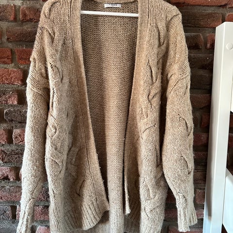 Veldig pent brukt myk og god flettegenser i ull fra Tine Solheim. Beige farge. Ca str M/L.