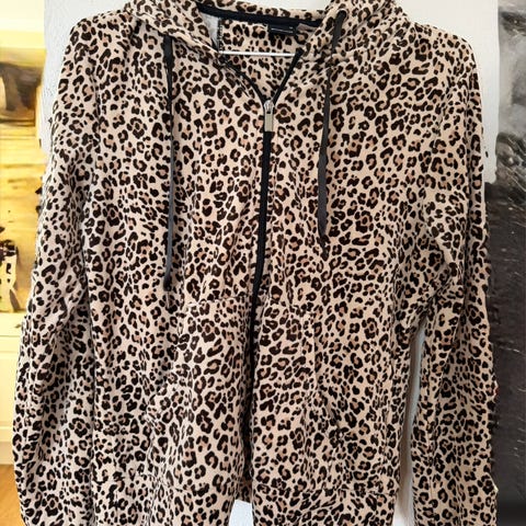 Stilig jakke med trykknapper. Kan brukes åpen eller som en genser. Bomull med krage og åpning i en viskosestoff