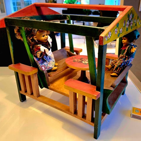 Dukkeholder i treverk m/ madrass og pute: kr 150