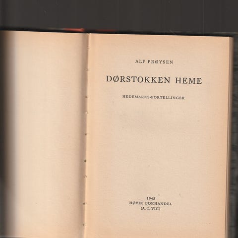 Dørstokken heme. Hedemarks-fortellinger Alf Prøysen. 1945 Debut!