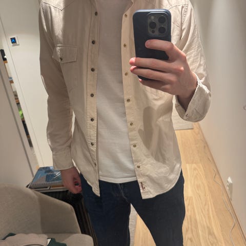 Hvit herrebukse. Benlengde 80 cm. Jeansstoff.