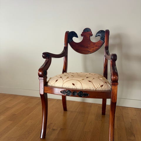 Stolen er profesjonelt montert av Møbeltapetserer Nils Trobe & Sønn, og den er i svært god stand.