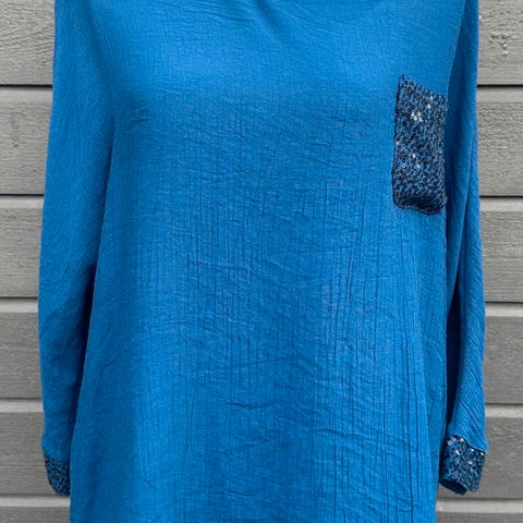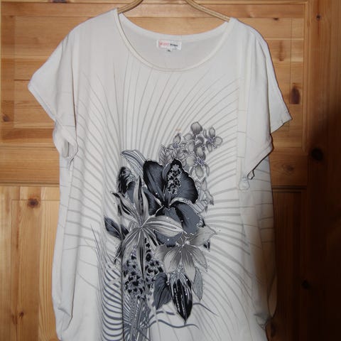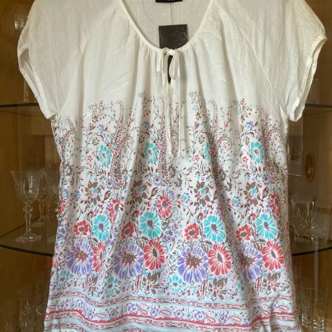 Selger en lys-mønstret topp i størrelse 38. Merke er Andrea. Elastisk materiale. Pent brukt.