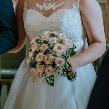 Kjole og tilbehøret er kjøpt på Agape i 2018 og jeg innser nå at den ikke trenger å henge innpakket i skapet lengre. Jeg var veldig fornøyd og håper den kan finne en ny eier. Den er i str 38. Pga snøringen bak så passer den til minst en størrelse opp og en ned. Den sitter som et skudd pga denne snøringen. Om bolero eller lengden på kjolen trenger justeringer, så er det mulig å få en skredder til å se på det. Jeg fikk den tilpasset på butikken.