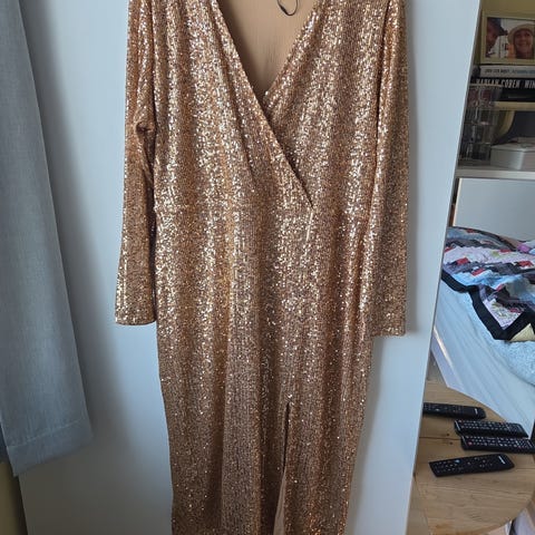 Vakker sølvgrå selskapskjole str 44-46 brukt 1 gang - NOK 250