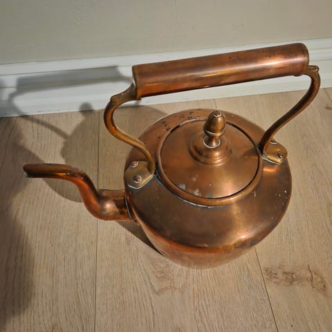 Dekorativt og flott eksemplar av en svært gammel kjele / kaffe - kjele i kobber, selges