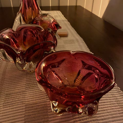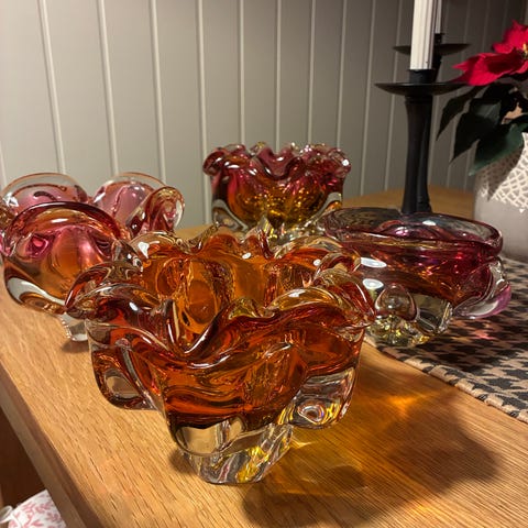 NYE PRISER - BUD VURDERES - Samling av nydelig 60-talls håndlagd Bohemia kunstglass. Designet av Josef Hospodka. Samlingen består av 9 enkeltobjekter. Alt glansfylt og skadefritt kan om ønskelig ta flere bilder av aktuelle objekter.