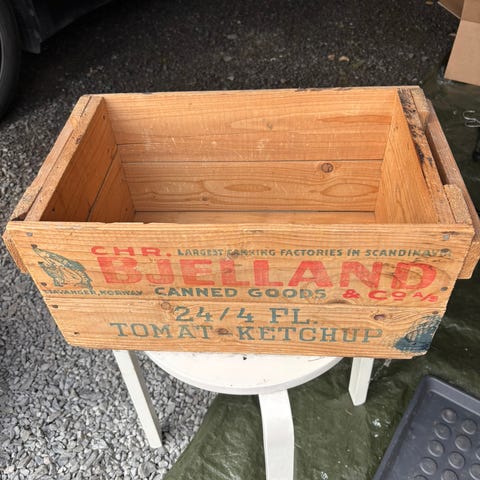God retro makrell kasse. Passer godt til dekorasjon i hytte, skibbu etc. jeg kan sende om ønskelig. Jeg tar Vipps.