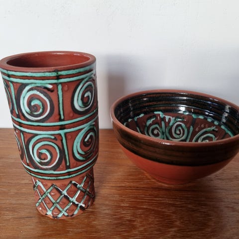 Søkeord: Terracotta? Vintage. Keramikkskål. Keramikkbolle. Bolle. Skål. Fat. Ceramic. Pottery. Bowl. Retro keramikk