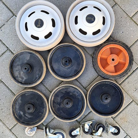Dette er motorer og hjul som har sittet i en liten selvgående støvsuger