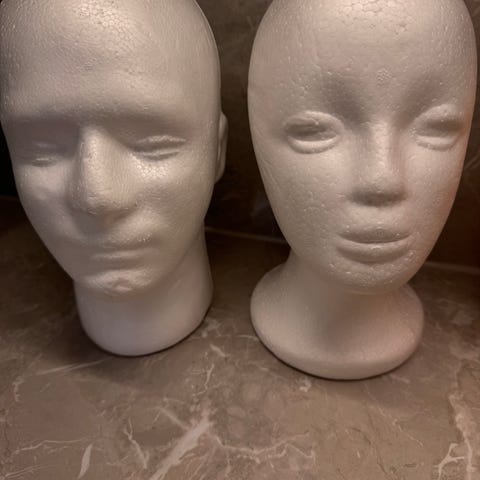 Jeg rydder verkstedet og selger parykker i str 7-8 til porselensdukker.