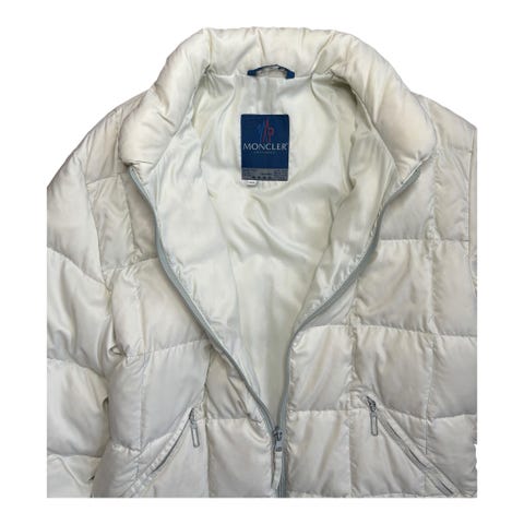 Jeg selger denne kule Moncler jakken i størrelse 0 (størrelse S). Fyllet er av dun.